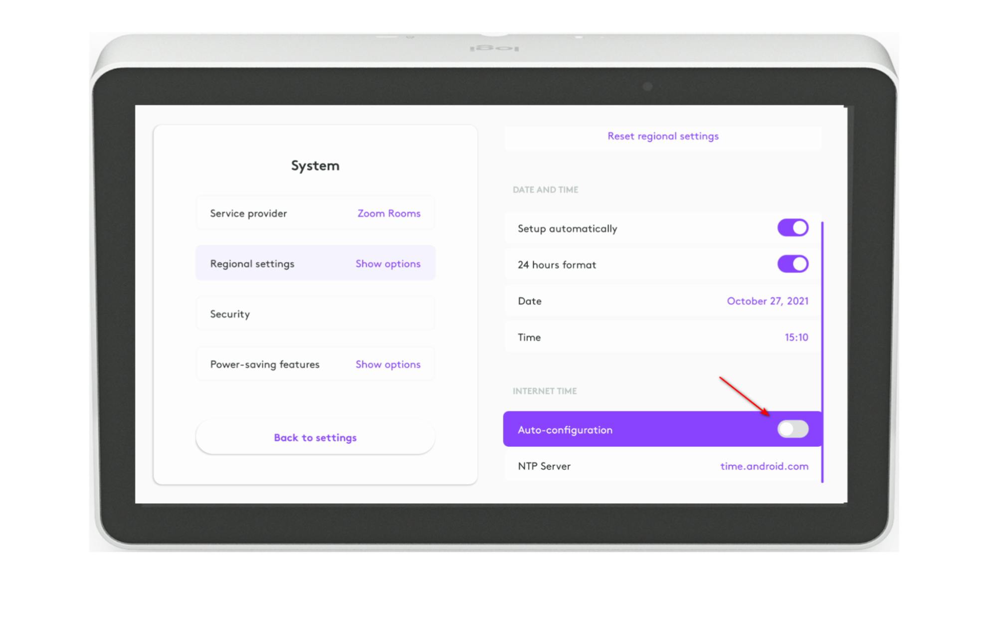 If Auto-configure time server is enabled, the time will be set to the time zone selected in regional settings.