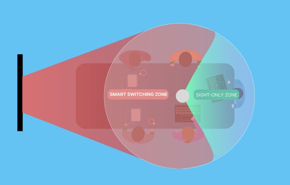 Smart Switching dynamically provides the best view of in-room participants depending on the direction they are facing. Smart Switching will automatically choose a participant’s best view between the front-of-room camera and Sight (center-of-table) camera. In a dual Sight deployment, Smart Switching is only used for in-room participants in the field of view of the Sight closest to the front-of-room camera.