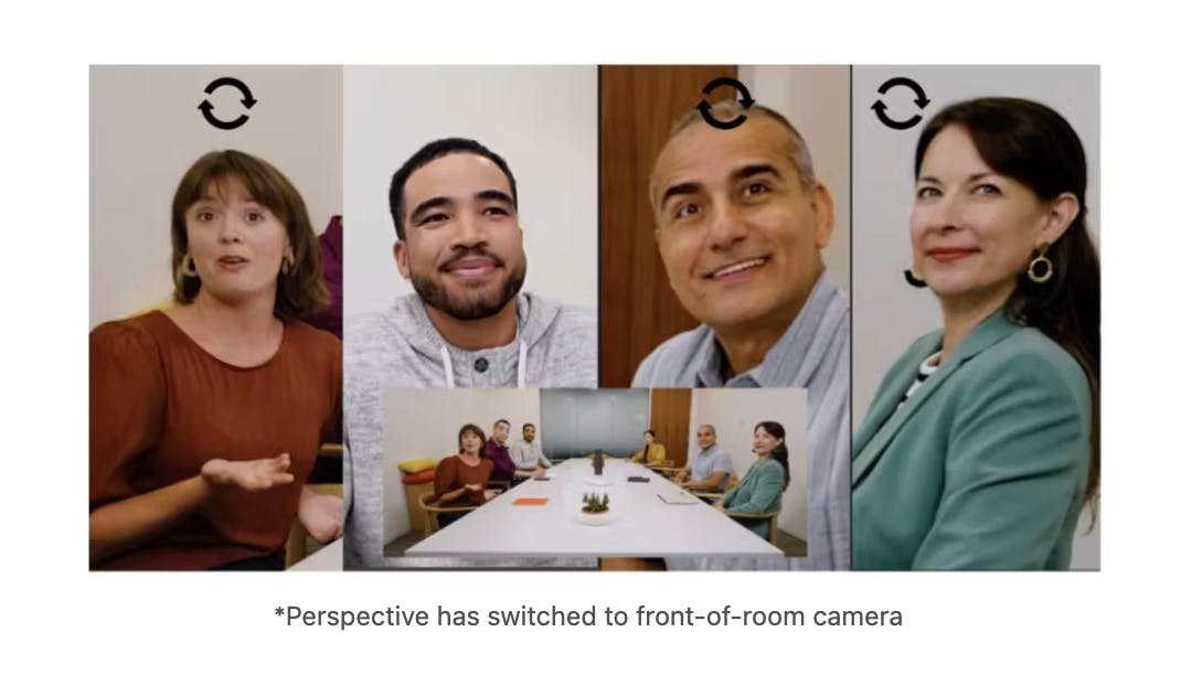 During a meeting-in-progress: Teams Rooms on Android users can change camera modes in the Teams Rooms camera mode selection during an active meeting. Teams Rooms on Windows users cannot change camera modes in the Teams Rooms camera mode selection during an active meeting (this feature is planned for a future CollabOS update).