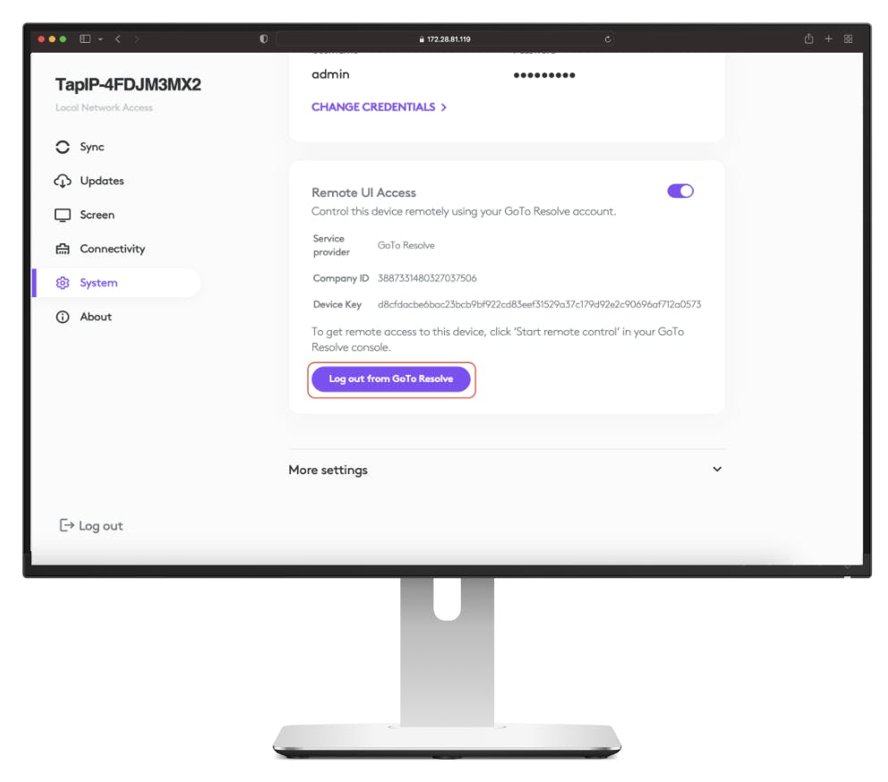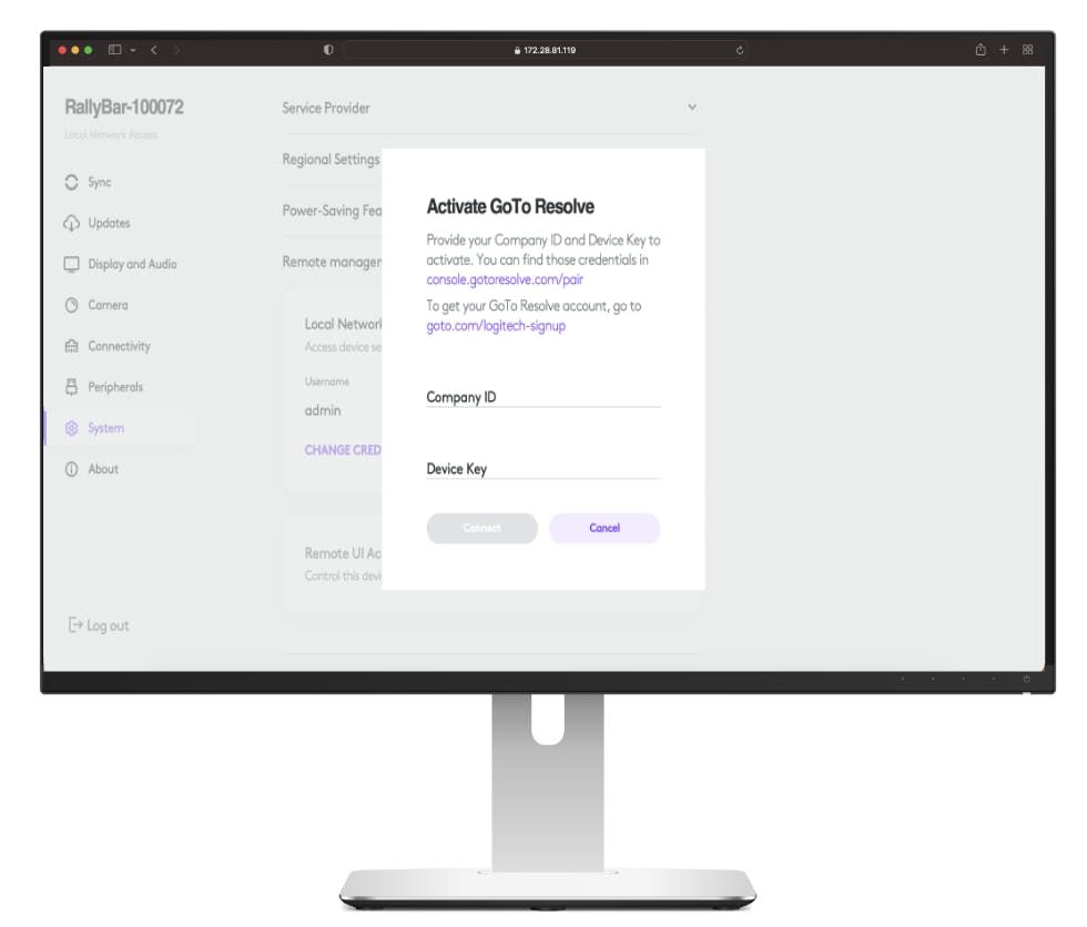 GoTo Resolve is an alternative to Logitech Sync Remote UI Access that allows you to securely view and control the CollabOS device from anywhere remotely, eliminating the need to be in the room for setup or to troubleshoot issues.