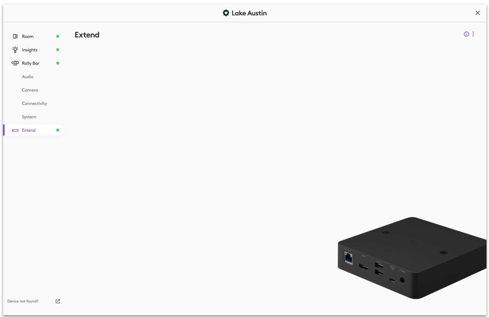 (Coming Soon!) Firmware Updates Extend’s firmware can be updated automatically via CollabOS updates with Logitech Rally Bar, Rally Bar Mini, and Rally Bar Huddle. Additionally, it can be updated manually using a Windows laptop.