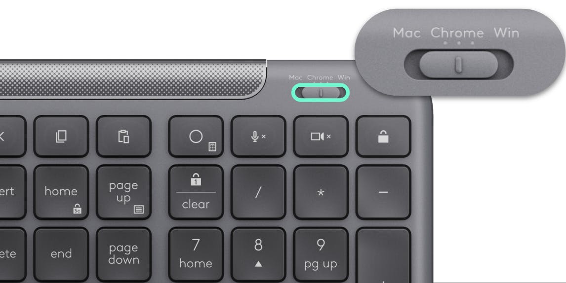 The layout on your Signature Slim Wired Keyboard K620 can be set to any of the main OS by moving the OS slider on the top right corner to the correct OS position.