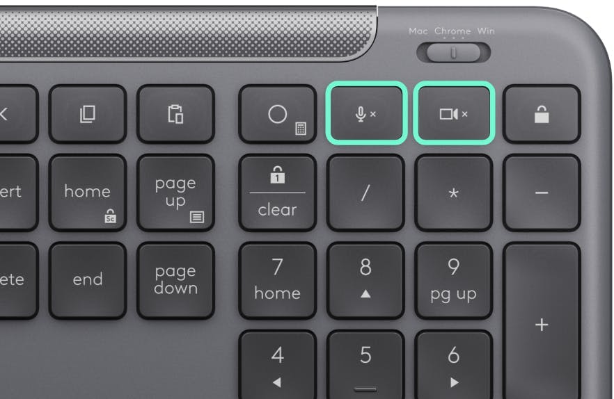 Your Signature Slim Keyboard has both, a mute mic key and video on and off key.