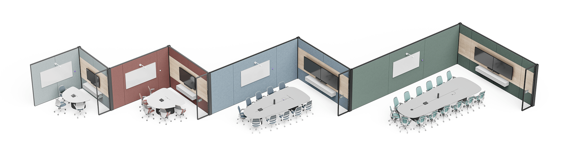 Configure and preview room setups with recommended products, then share your solutions.