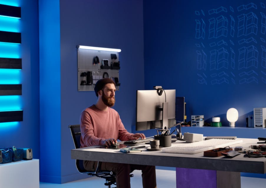 Let’s start in the home. Whether employees are fully offsite or working from home once or twice a week, remote workers need the tools to operate at their peak and feel like part of the team. Logitech offers a range of high-performance peripherals that reduce the hassles of remote work and set employees up for success. Enterprise-grade webcams and headsets deliver a state-of-the-art audio and video experience. Smart mice and keyboards encourage a flow state with features designed for performance and comfort. An advanced, all-in-one docking station, complete with built-in meeting controls, speakers, and microphone, ties it all together.