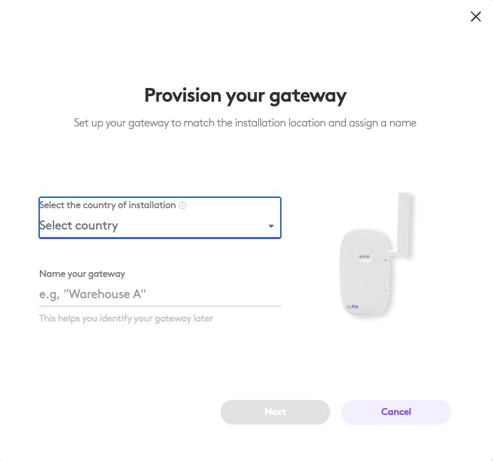 • Select the country where the gateway is installed.