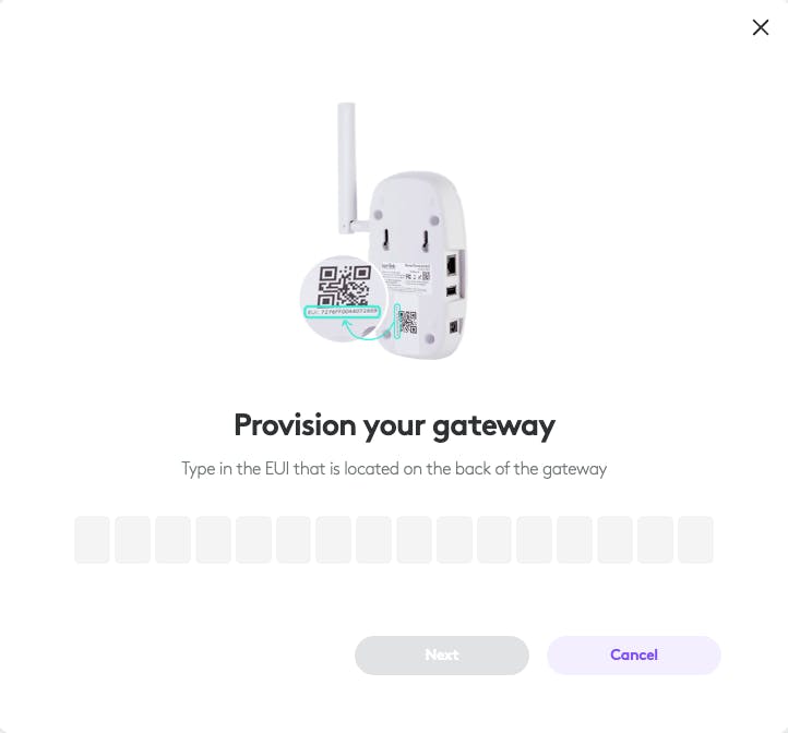 • Enter the Gateway EUI (found on the label at the back of the device).