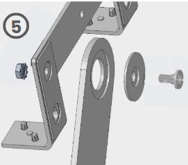 Step 5: Inset washer to recess of long arm. Aligning with top hole of L Bracket, use the washer and screw to connect all pieces together.