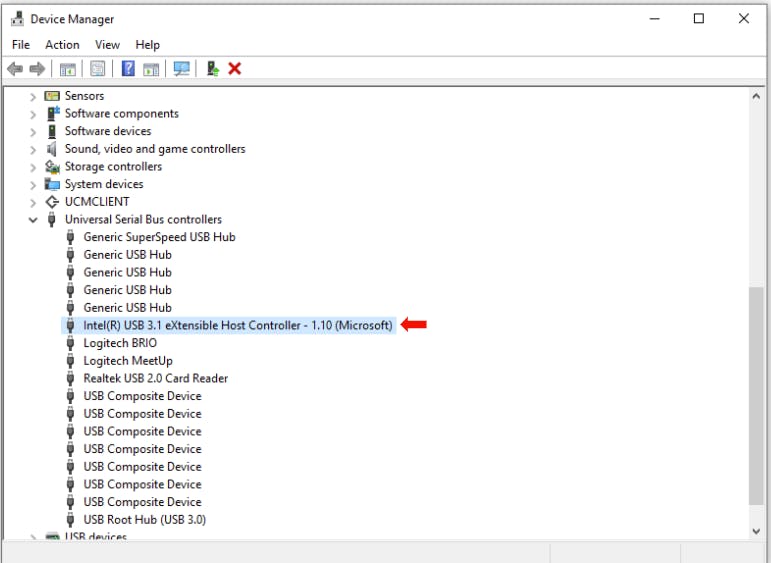 Select and double-click “Intel USB 3.1 eXtensible Host Controller” from the list.