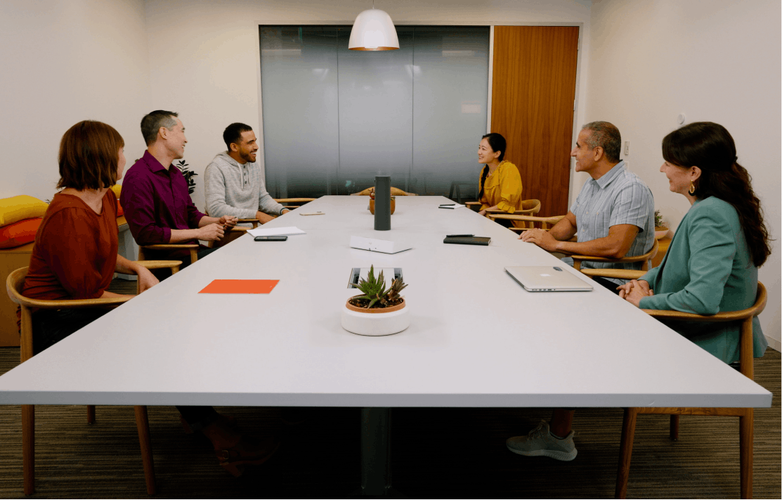 Smart Switching uses AI to automatically switch cameras based on which way the talker is facing. As those in the room speak to each other, they are typically framed by Sight. When they face the front of the room to speak to someone on the far end, Rally Bar will typically frame them.