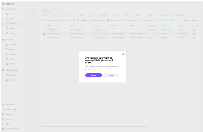 You can also remove licenses from the room level or from the room inventory just as easily.