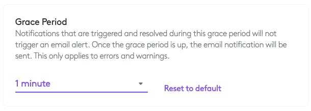 You can activate a grace period for errors and warnings. If they are resolved during the grace period, Sync will not trigger an email alert. Once the grace period is up, the email notification will be sent.