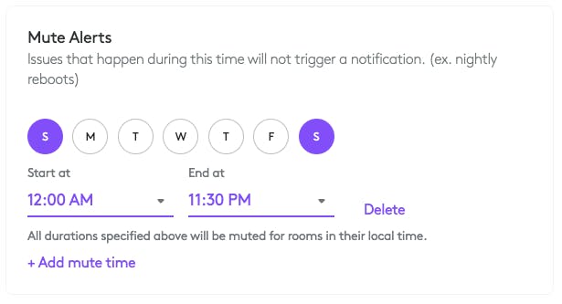 If you want to receive resolution emails (when a room is not presenting an issue, a resolution event will trigger), select this option.