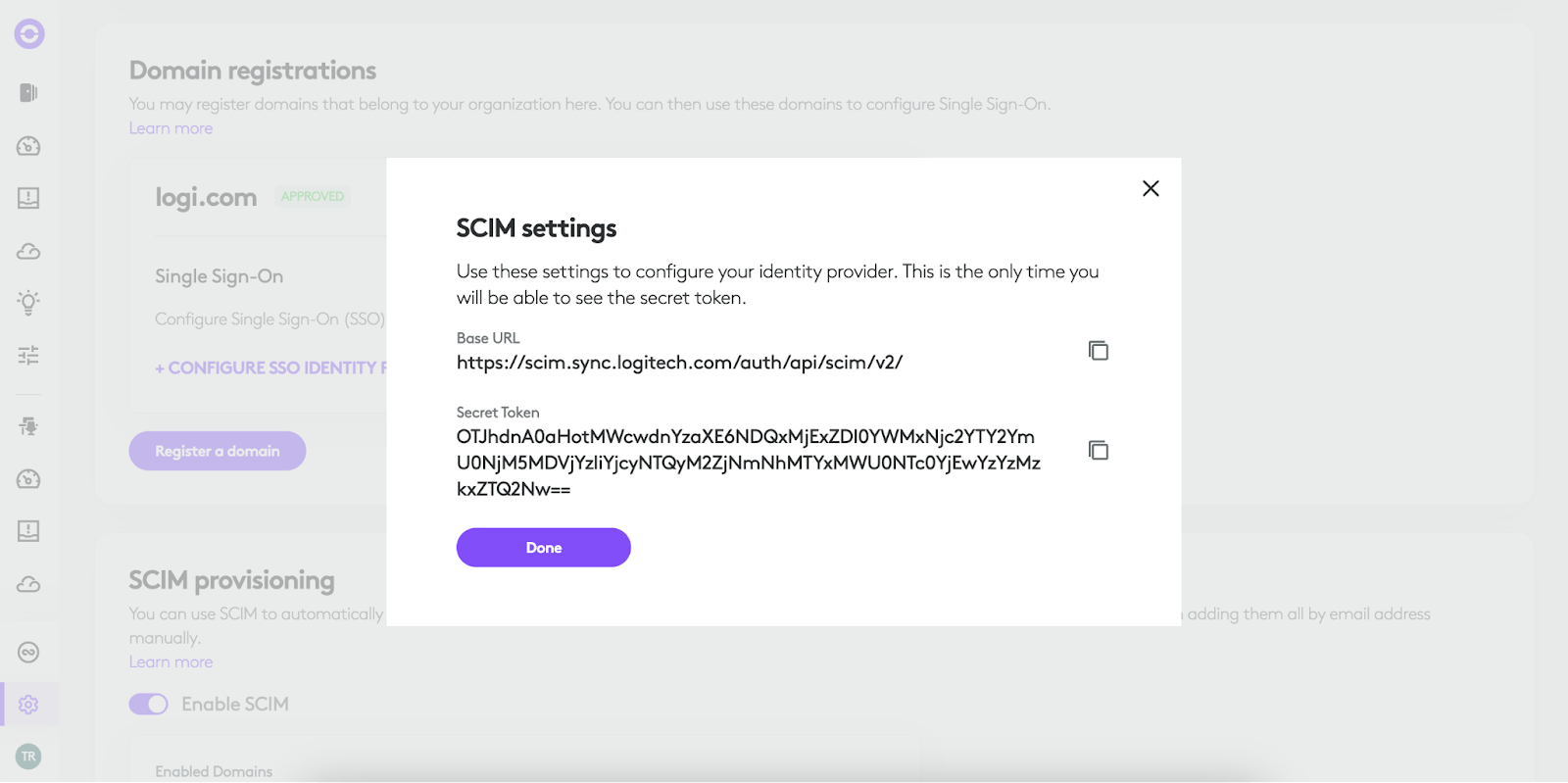 As a reminder, you will have to already have a domain registered to be able to complete your SCIM provisioning.