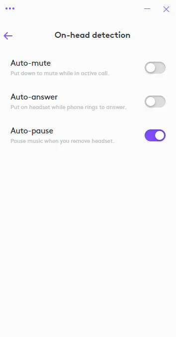 Zone Wireless 2 has an on-head detection sensor that controls the headset status based on whether it is being worn or not. It can be disabled or enabled on the Logi Tune app.